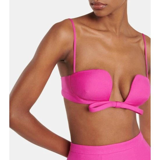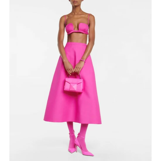 This deep pink bralette forms part of Valentino’s Pink PP collection, an exploration of shape via a single hue. This design is made from wool and silk Crêpe Couture, and will add an alluring touch to the collection’s tailored pieces.