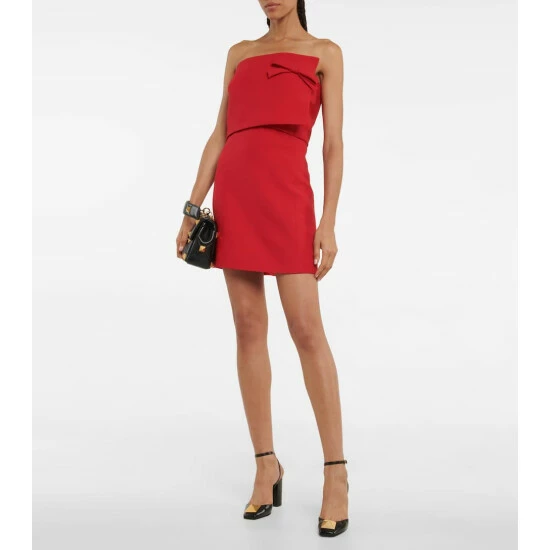Simple, yet exquisitely elegant – this Valentino minidress is cut from structured wool and silk crêpe. Shaped with an off-shoulder neckline and A-line skirt, it’s finished with a bow detail at the wrap-across front.