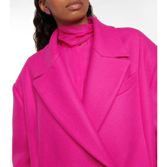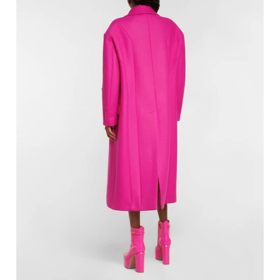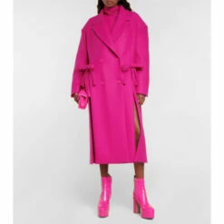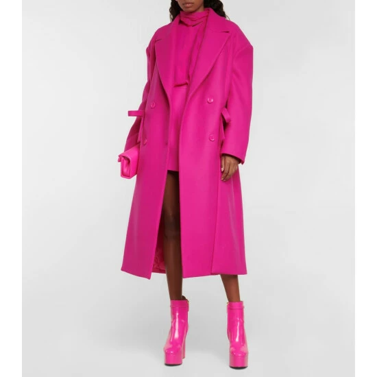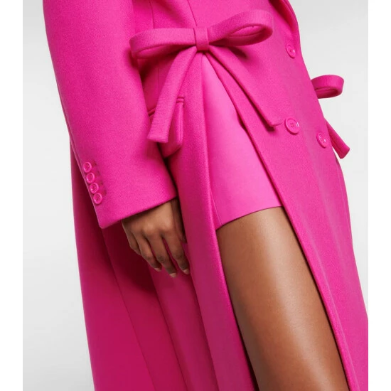 Visual saturation was the theme of Valentino’s all-pink AW22 runway show, which electrified the fashion world and prompted a fresh addition to the Pantone color scale. In a voluminous silhouette with self-tie bows, this coat is made from a weighty, double wool-blend fabric.