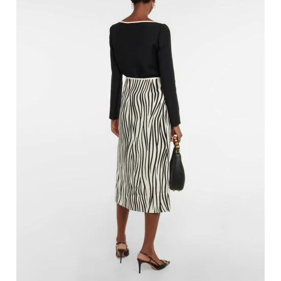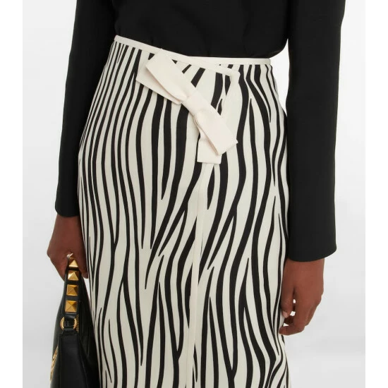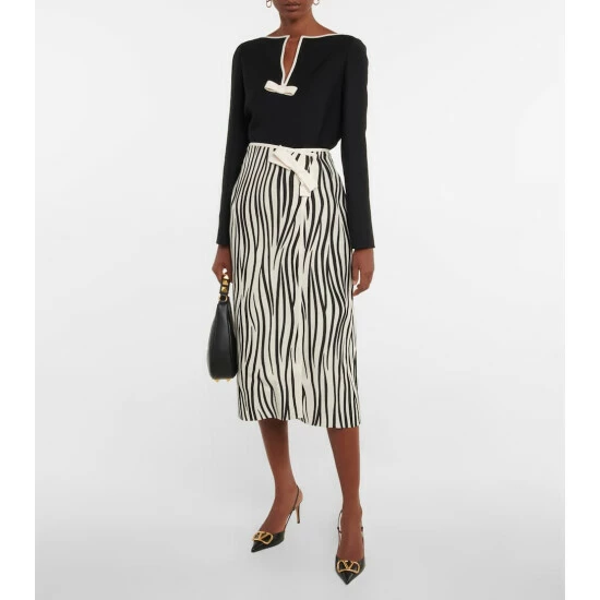 Valentino takes a refined approach to the zebra print with the design of this streamlined midi skirt. Cut into a straight hem, the wool-blend design has a solid-color trim at the waistband and matching bow embellishment.